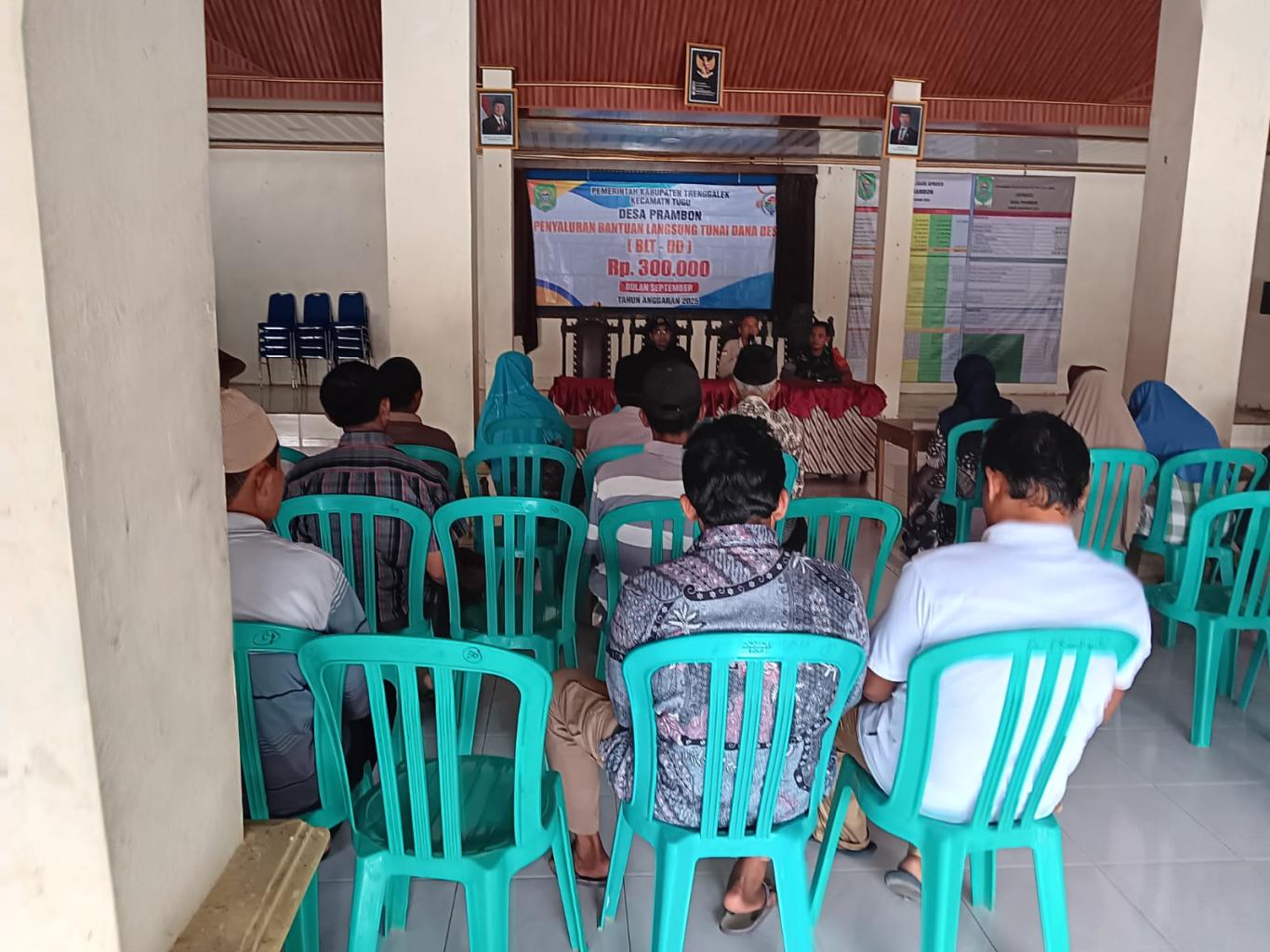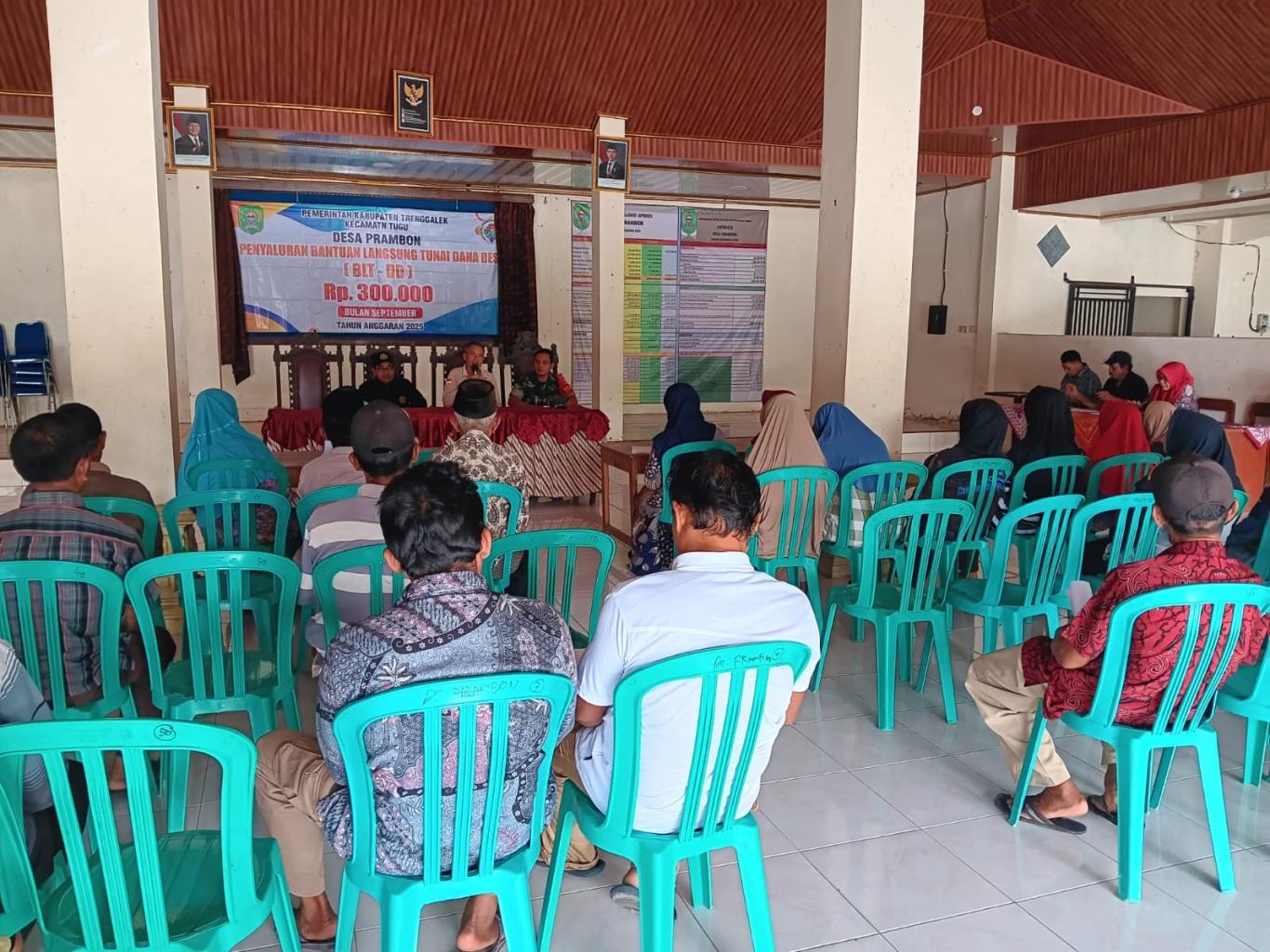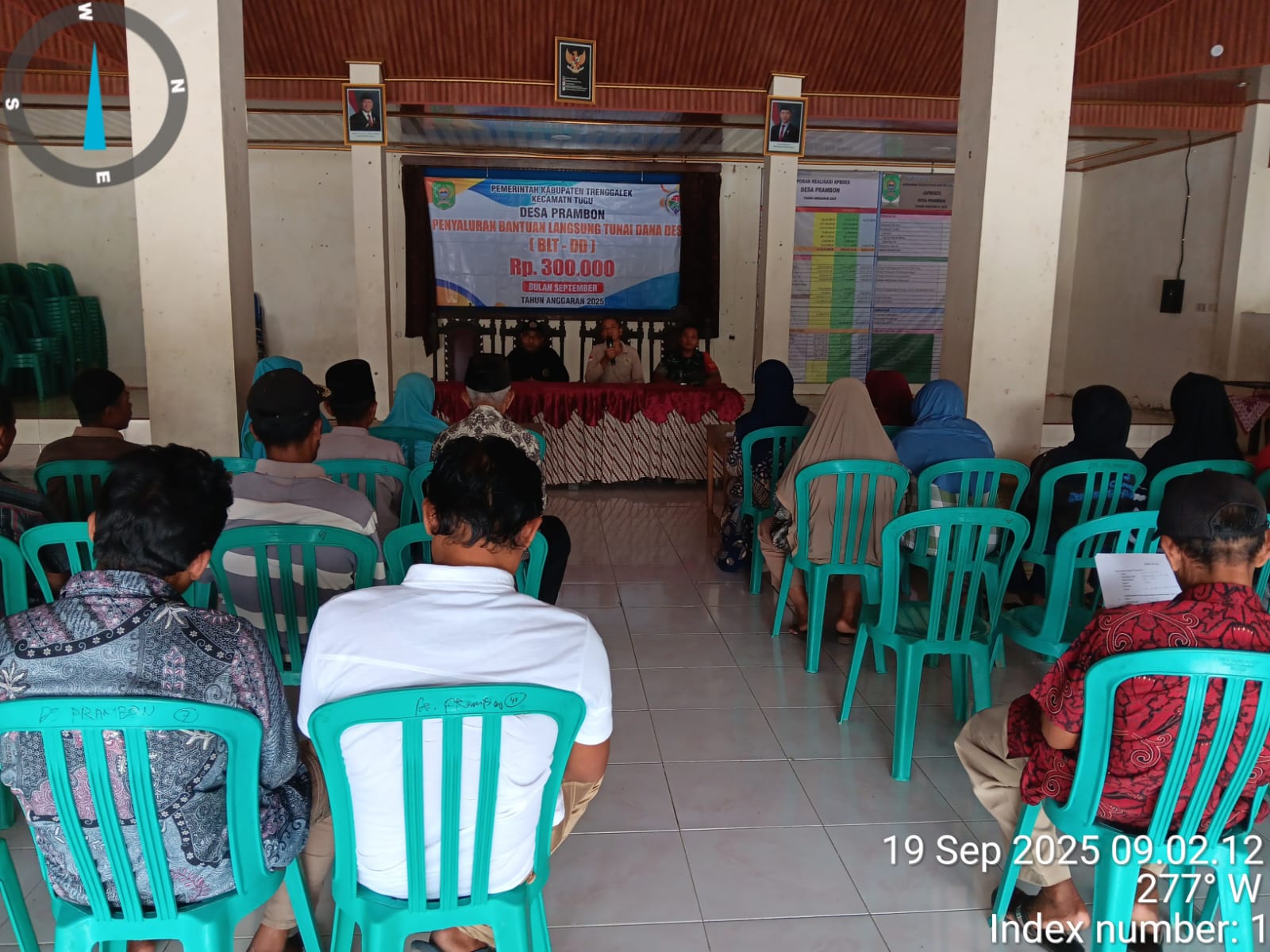 Jumat 19 September 2025,Pemerintah Desa Prambon melakukan kegiatan penyaluran Bantuan Langsung Tunai Dana Desa (BLT DD) Bulan Agustus Tahun 2025 . Kegiatan ini dilaksakan dibalai Desa Prambon dan dimulai pukul 08.00 WIB. BLT DD Tahun 2025 telah disalurkan oleh Pemerintah Desa Prambon kepada 37 KPM (Keluarga Penerima Manfaat) setiap KPM menerima bantuan masing masing sebesar Rp 300.000,- setiap bulan . Proses penyaluran BLT DD berlangsung dengan tertib dan kegiatan berjalan dengan lancar .dan diharapkan kepada Warga Masyarakat agar memaksimalkan penggunaan bantuan tersebut untuk kebutuhan pokok seperti membeli bahan makanan sembako dan sebagainya sesuai kebutuhan daripada kepentingan lainya. late post