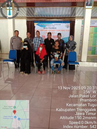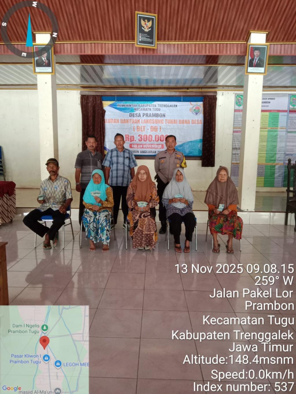 Kamis,13 November 2025,Pemerintah Desa Prambon melakukan kegiatan penyaluran Bantuan Langsung Tunai Dana Desa (BLT DD) Bulan Agustus Tahun 2025 . Kegiatan ini dilaksakan dibalai Desa Prambon dan dimulai pukul 08.00 WIB. BLT DD Tahun 2025 telah disalurkan oleh Pemerintah Desa Prambon kepada 37 KPM (Keluarga Penerima Manfaat) setiap KPM menerima bantuan masing masing sebesar Rp 300.000,- setiap bulan  . Proses penyaluran BLT DD berlangsung dengan tertib dan kegiatan berjalan dengan lancar .dan diharapkan kepada Warga Masyarakat agar memaksimalkan penggunaan bantuan tersebut untuk kebutuhan pokok seperti membeli bahan makanan sembako dan sebagainya sesuai kebutuhan daripada kepentingan lainya.